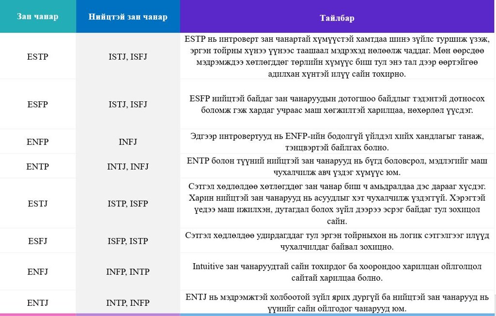 Зан чанарын MBTI тест:Өөрийгөө олоорой