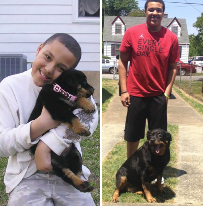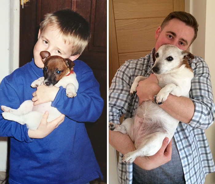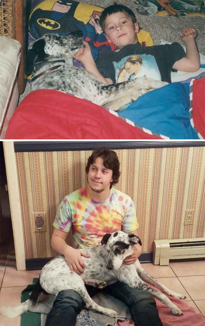 Тэгвэл ноход эзэдтэйгээ хамт хэрхэн өсөн том болж өтөлснийг дараах сонирхолтой фото мэдээллээс хараарай. Тэдний зарим нь нохойгоо гөлөг байхад нь анх уулзсан мөч ба эцсийн замд нь үдэж байх үеийн зургаа харьцуулжээ.