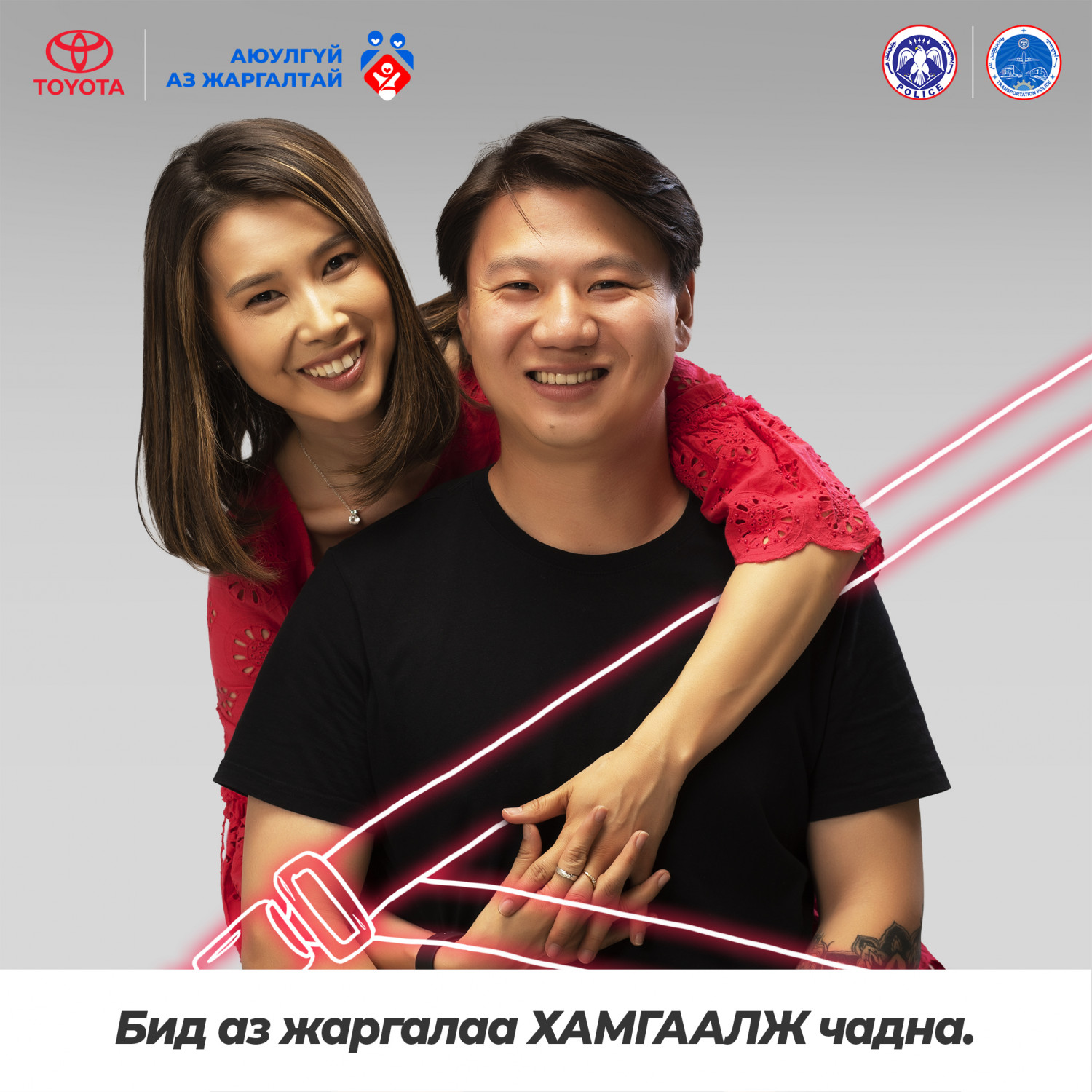 Мөн хүмүүст Аз жаргал аюулгүй байдалтай нь холбоотой гэдгийг сануулж, суудлын бүсээ зүүхийг уриалсан цуврал фото сурталчилгааг хүргэж эхэлсэн.