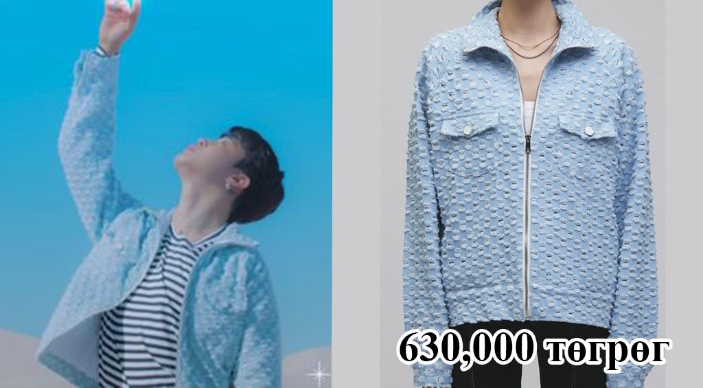 “Spring day” клип дээрх хувцаслалтай төстэй харагдаж байгаа биз? Мөн ifxy брэндийн хүрэм өмссөн байна.
