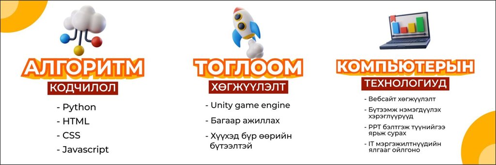Хөтөлбөрт хамрагдсан хүүхдүүд зуслангийн үндсэн үйл ажиллагаанд хамрагдахаас гадна Apple брэндийн laptop-р тохижуулсан сургалтын лабораторид суралцах боломжтой юм. Хөтөлбөр нь сонирхол нэгтэй хүүхдүүдтэй хамтран суралцах, цагийг үр бүтээлтэй өнгөрүүлэх, сонирхлоо хөгжүүлэх тохитой орчинг бүрдүүлсэн бөгөөд одоогоор 5 дугаар ээлжийн 40 хүүхдэд тусгай хөтөлбөр амжилттай хэрэгжиж байна. Сургалтад гадаад болон дотоодын томоохон компаниудад ажиллаж буй Монгол IT инженер, интерпрэйнерүүдтэй зайнаас болон танхимд уулзаж, сонирхсон асуултаа асуух, тус мэргэжилтэй холбоотой зөвөлгөө, мэдээлэл авах боломжтой. Тус хөтөлбөрийг олон жил программчлалын чиглэлээр ажилласан мэргэжлийн туршлагатай багш нар удирдан шинэлэг арга барилаар зохион байгуулж буйгаараа онцлогтой юм.