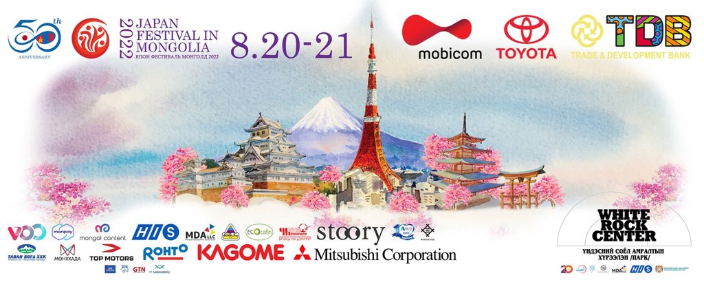 Монгол Японы дипломат харилцаа тогтоосны 50 жилийн ойн өдөр тохиож “JAPAN FESTIVAL IN MONGOLIA ” арга хэмжээг ОНЛАЙНААР зохион байгуулсан бөгөөд нийт 21,000 хүн хамрагдаж маш амжилттай зохион байгуулагдсан билээ. Харин өнөөдөр, маргааш хоёр өдөр буюу наймдугаар сарын 20, 21-нд“JAPAN FESTIVAL IN MONGOLIA 2022” арга хэмжээг БИЕТЭЭР зохион байгуулах гэж байна.