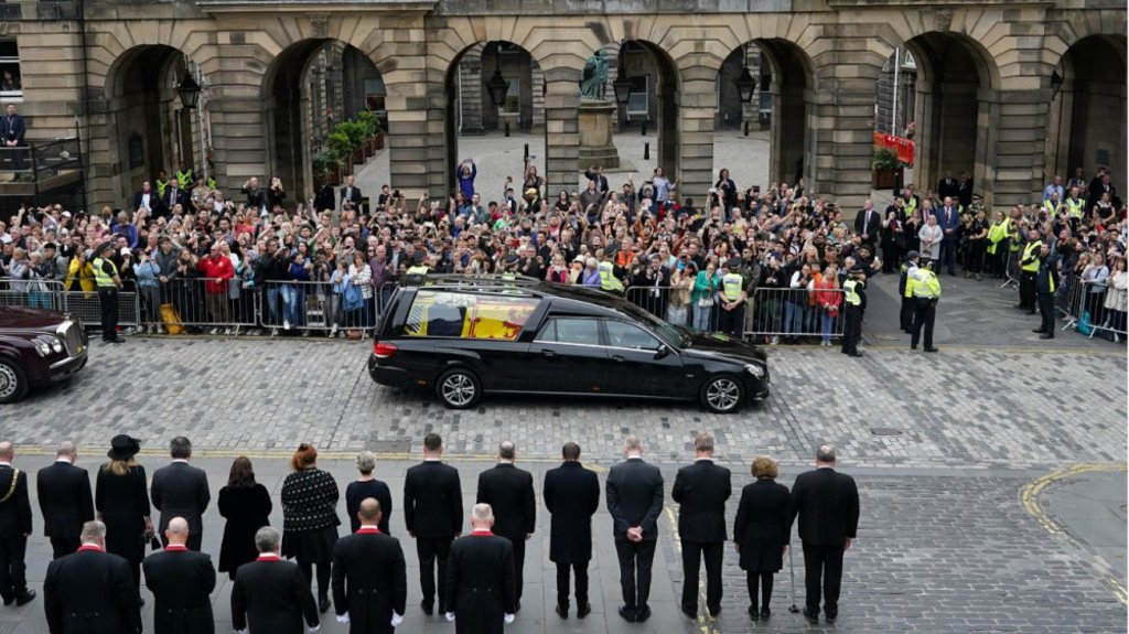 Хаан ширээнд 70 жил суусан хатан хааны "сүүлийн аялал" ням гарагт эхэлжээ. Хатан хааны насан эцэслэсэн Эдинбург дэх Балморал шилтгээнээс шарилыг нь гаргаж Шотландын хэд хэдэн хот, тосгодоор дайран 280 км зам туулаад Холирүүдийн ордонд байрлуулах бөгөөд тэндээ хүмүүс салах ёс гүйцэтгэх юм байна.