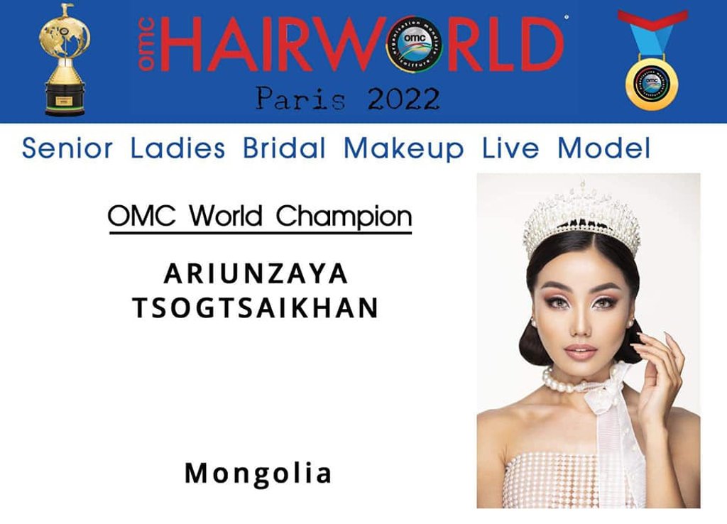 Дэлхийн гоо сайхны олимп хэмээдэг 75 жилийн түүхтэй OMC Hairworld тэмцээнд мэйкап артист Ц.Ариунзаяа оролцож дэлхийн хошой аварга боллоо.