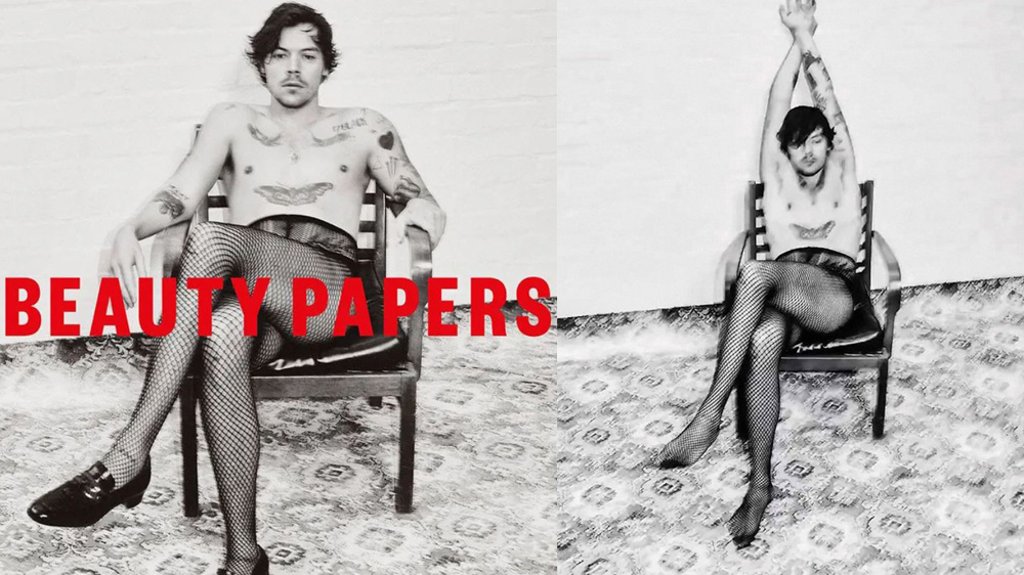 2020 онд Harry Styles Beauty Papers сэтгүүлийн нүүр хуудасны хар цагаан зураг дээр Gucci-гийн лофер болон торон триконоос өөр юу ч өмсөлгүй гарсан нь олны анхаарлыг ихэд татаж байв. Мөн сэтгүүл доторх бусад зургууд дээр Harry тод нүүр будалт хийсэн байдаг.