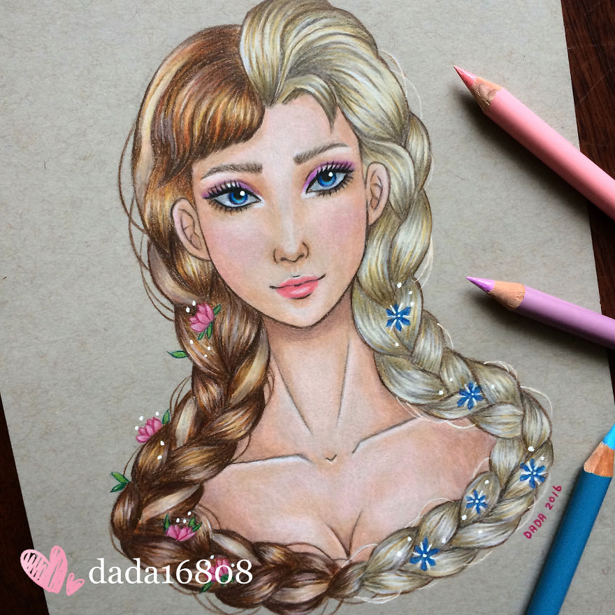 Дада бол Диснейн хүүхэлдэйн кинонуудын шүтэн бишрэгч, өсвөр насны нэгэн охин. Гэхдээ тэрээр зүгээр ч нэг шүтэн бишрэгч бус тэдгээр дүрүүдийг өөрийн бүтээл болгож зурдаг байна. Мөн зүгээр ч нэг зурах биш маш сонирхолтой байдлаар буюу эерэг болон эсрэг талын дүрүүдийг нийлүүлж нэг дүр болгон зурдаг аж. Хоёр дүрийг ингэж харах нь маш сонирхолтой юм гээч! Түүний бүтээлүүдийг сонирхоорой.