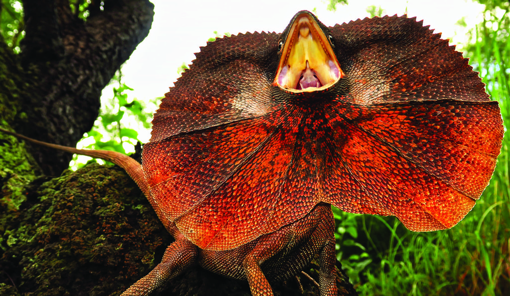 Австралийн хойд хэсэг, Шинэ Гвинейн өмнөд хэсэгт амьдардаг, аврага хүзүүт гүрвэл. Энэхүү гүрвэл нь аймшигтай дүр төрхтэй ба зөвхөн шавьжаар хооллодог. Frill-necked lizard махчин амьтдаас хамгаалахын тулд бие махбод нь дасан зохицсон бөгөөд хойд хөлөөрөө маш хурдан гүйх чадвартай.