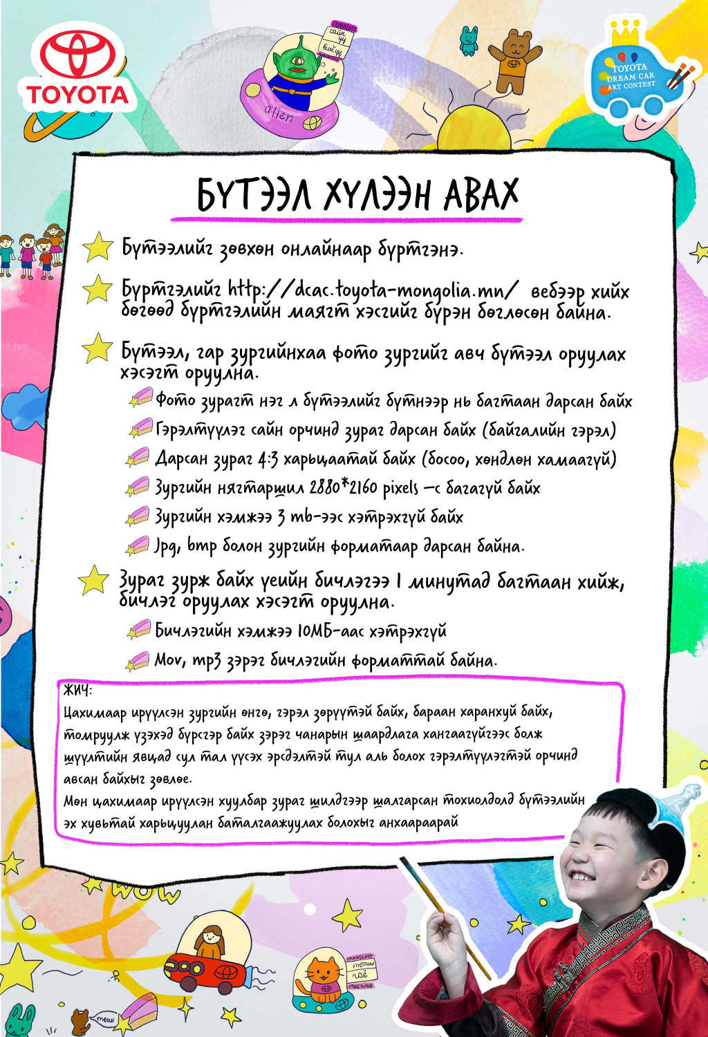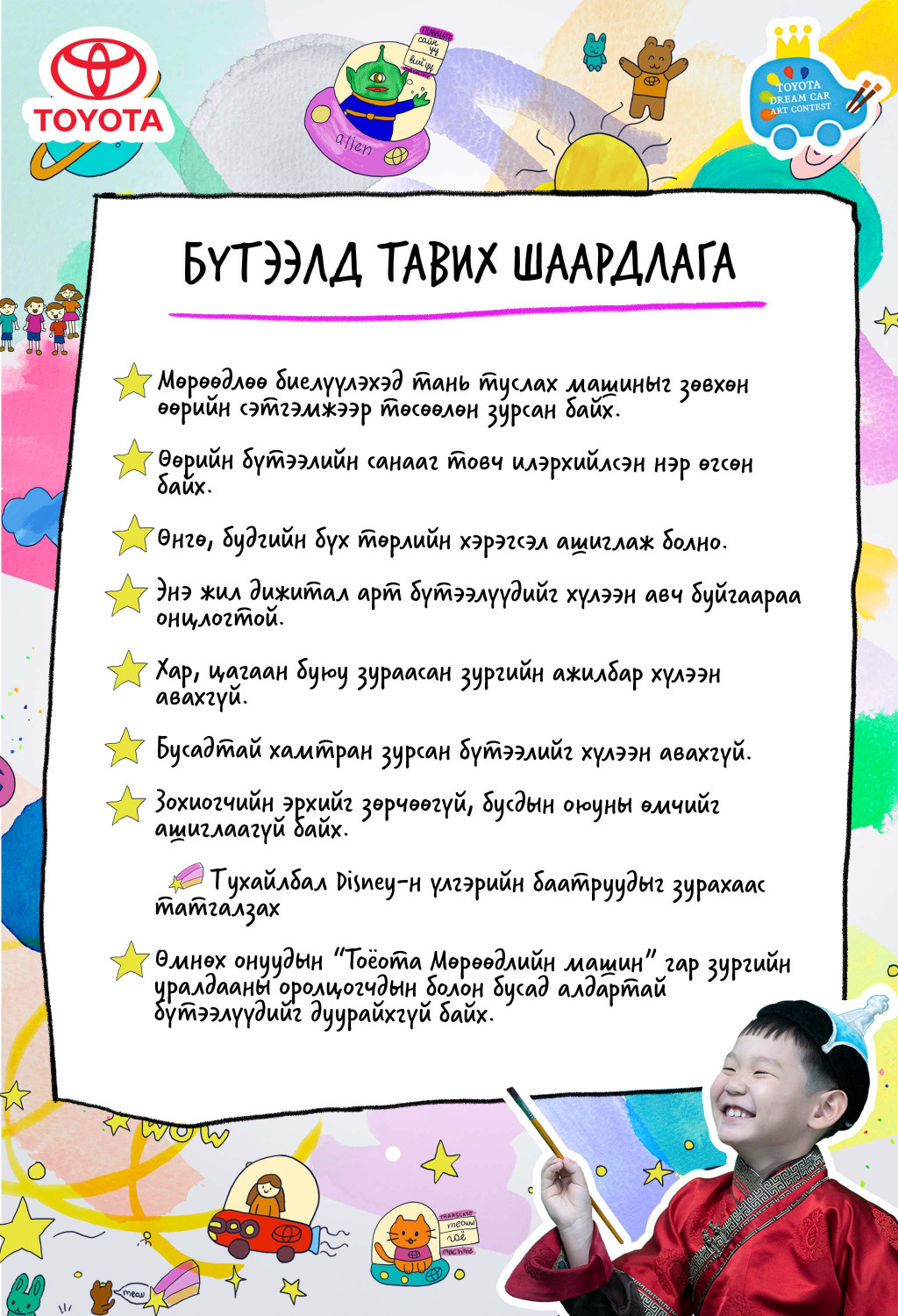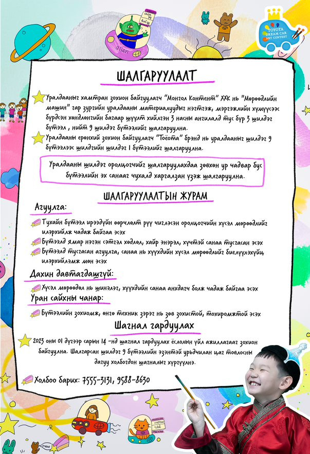 Үүнийг уншиж буй чамд ч гэсэн уран сэтгэмжээ ашиглан зурсан зургаараа мөрөөдлөө биелүүлэх боломж бий учир уралдааны удирдамжид анхаарлаа хандуулна уу.