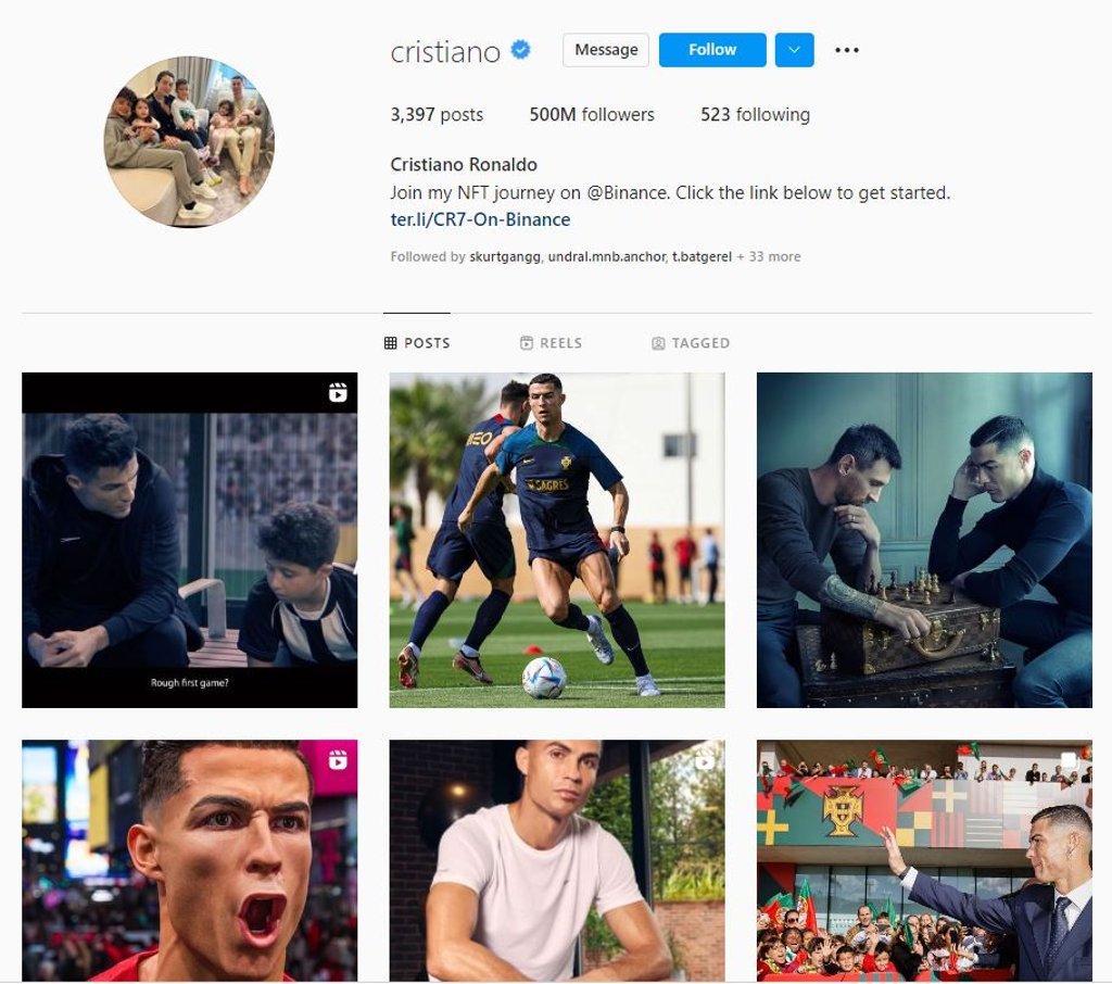 Португалын шигшээ баг болон Английн Манчестер Юнайтед клубийн хөл бөмбөгчин Cristiano Ronaldo Instagram-д 500 сая дагагчтай анхны хүн боллоо.