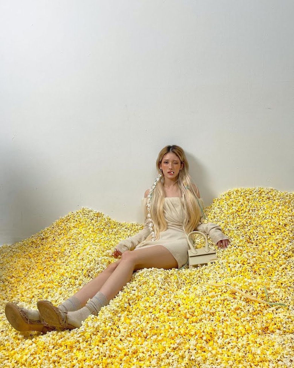 Тэрээр Jacquemus брендийн уг даашинзыг урт түрийтэй оймс, өндөр өсгийт, болон өхөөрдөм гоёл чимэглэлтэй хослуулж, хүүхэлдэйн киноны дүр мэт хөөрхөн харагдаж байсан юм.