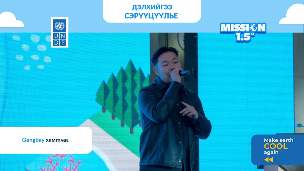 Тус арга хэмжээнд залуусын сонсох дуртай хамтлаг болох Gangbay хамтлаг хүрэлцэн ирж хүлэмжийн хийн ялгарлыг бууруулах, уур амьсгалын өөрчлөлттэй тэмцэхийг уриалсан “ЦЭЦЭГ” нэртэй шинэхэн дуугаа толилууллаа. Тэд энэхүү уран бүтээлээ тун удахгүй олон нийтэд танилцуулах аж.
