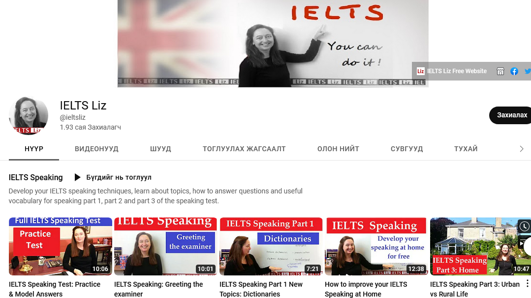 Энэхүү суваг нь IELTS шалгалтад бэлтгэгчдийн дунд нэлээд нэр хүндтэй. Хичээлүүд нь хэдий олон жилийн өмнөх ч гэлээ маш чанартай бөгөөд ихэвчлэн 5-15 минутын богино видеонуудтай учир таныг уйдаахгүй. Мөн Liz багшийн бусад хэрэгтэй зөвлөгөө болон жишээнүүдийг харахыг хүсвэл IELTS Liz гэсэн вебсайтаар нь зочлохыг санал болгож байна.