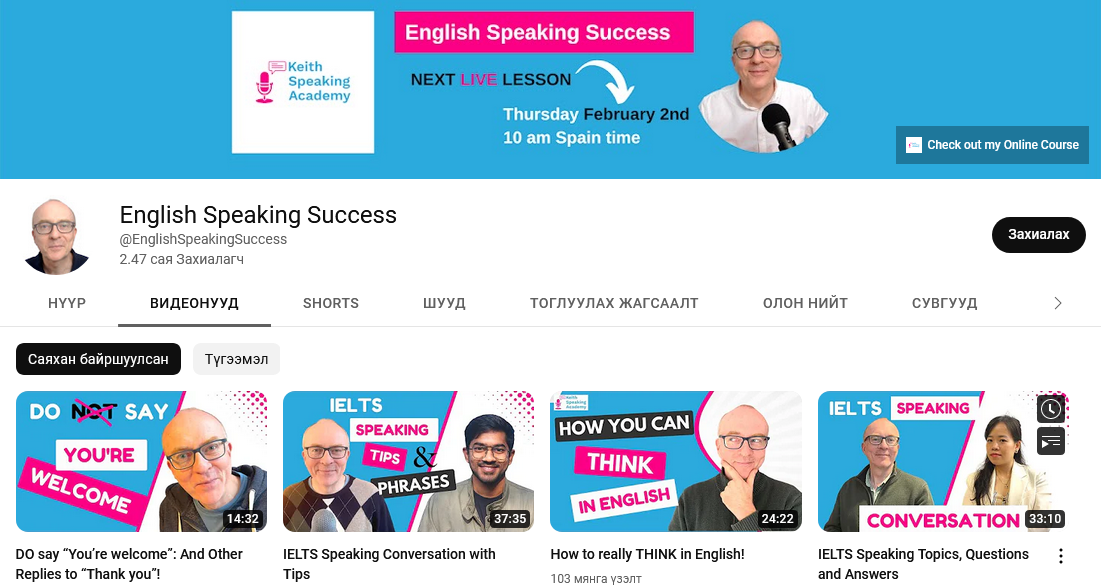 Зөвхөн ярианы хэсгийг дагнаж заадаг энэхүү хаяг нь хичээлүүдээ маш сонирхолтой, хөгжилтэй аргаар заадаг учраас танд таалагдана гэдэгт итгэлтэй байна.