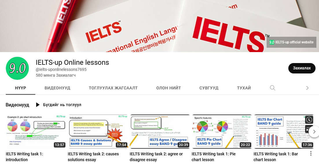 Энэ youtube хуудас нь бичих хэсгийнхээ оноог сайжруулахад туслах болно. Ielts шалгалтын эсээ бичих хэсгүүдийг маш ойлгомжтойгоор тайлбарладаг ба мөн өндөр оноо авах бүтэц, жишээ эсээнүүд оруулдгаараа давуу талтай.