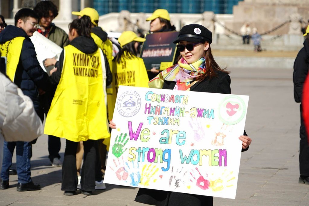 “Нэг тэрбумаараа тэмцье” эмэгтэйчүүдийн эрхийн төлөөх алхалт Сүхбаатарын талбайд болов. Дэлхийн 200 орчим улсад энэ алхалтыг зохион байгуулдаг. Харин манай улсад гуравдугаар сарын 8-нд болдог онцлогтой.