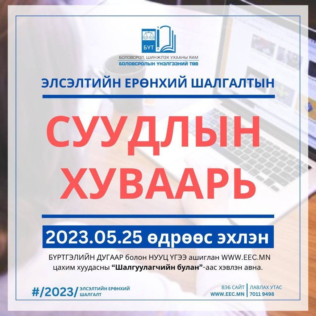 ЭЕШ-д шалгуулагчдын шалгалт өгөх шалгалтын байр, анги танхим, суудлын дугаарын мэдээлэл бүхий “Суудлын хуваарь” хуудсыг хэвлэж авах боломжтой боллоо.