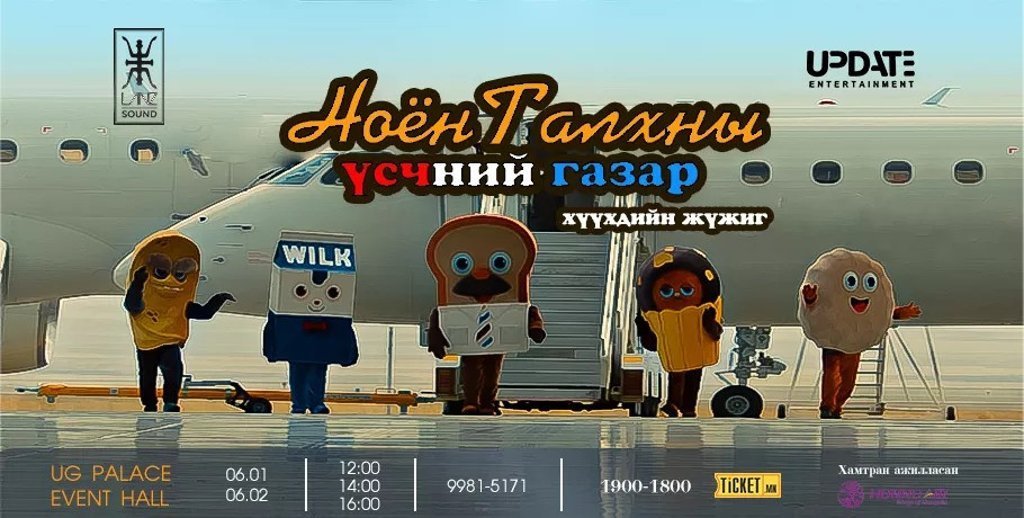 ТОВЧ ТАЙЛБАР: "Ноён талхны үсчний газар" хүүхэлдэйн киног албан ёсны эрхтэйгээр хүүхдийн жүжиг болгон хүүхэд багачууддаа хүргэж байна. Үсчний газрын шинэ адал явдлаар аялж хүүхэд багачууд Ноён талх болон Сүү, Шоко нартай хамт хорон санаат Чипсээс амттаны хотоо аварцгаая.