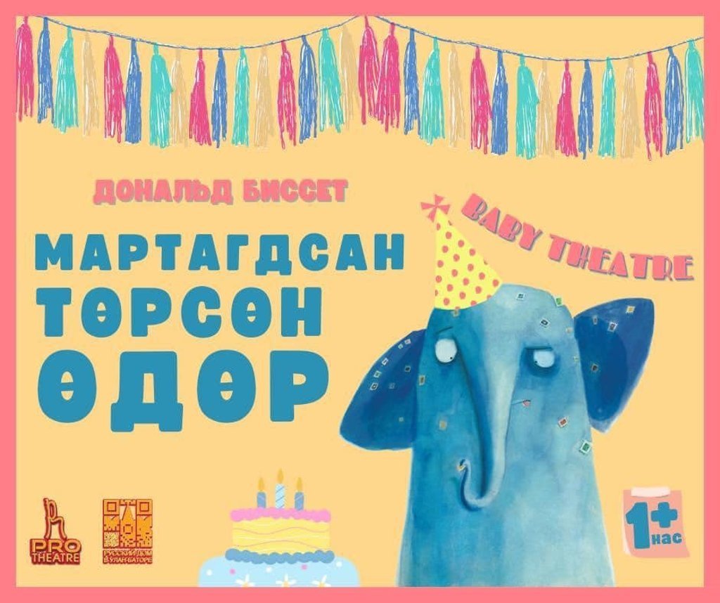 ТОВЧ ТАЙЛБАР: PRO THEATRE-ийн ээлжит уран бүтээл Английн хүүхдийн зохиолч Дональд Биссет-ийн "Мартагдсан төрсөн өдөр" үлгэрээс сэдэвлэн бүтээсэн хүүхдийн жүжгээ бяцхан үзэгчдэдээ Baby theatre төрлөөр уулзахад бэлэн боллоо.