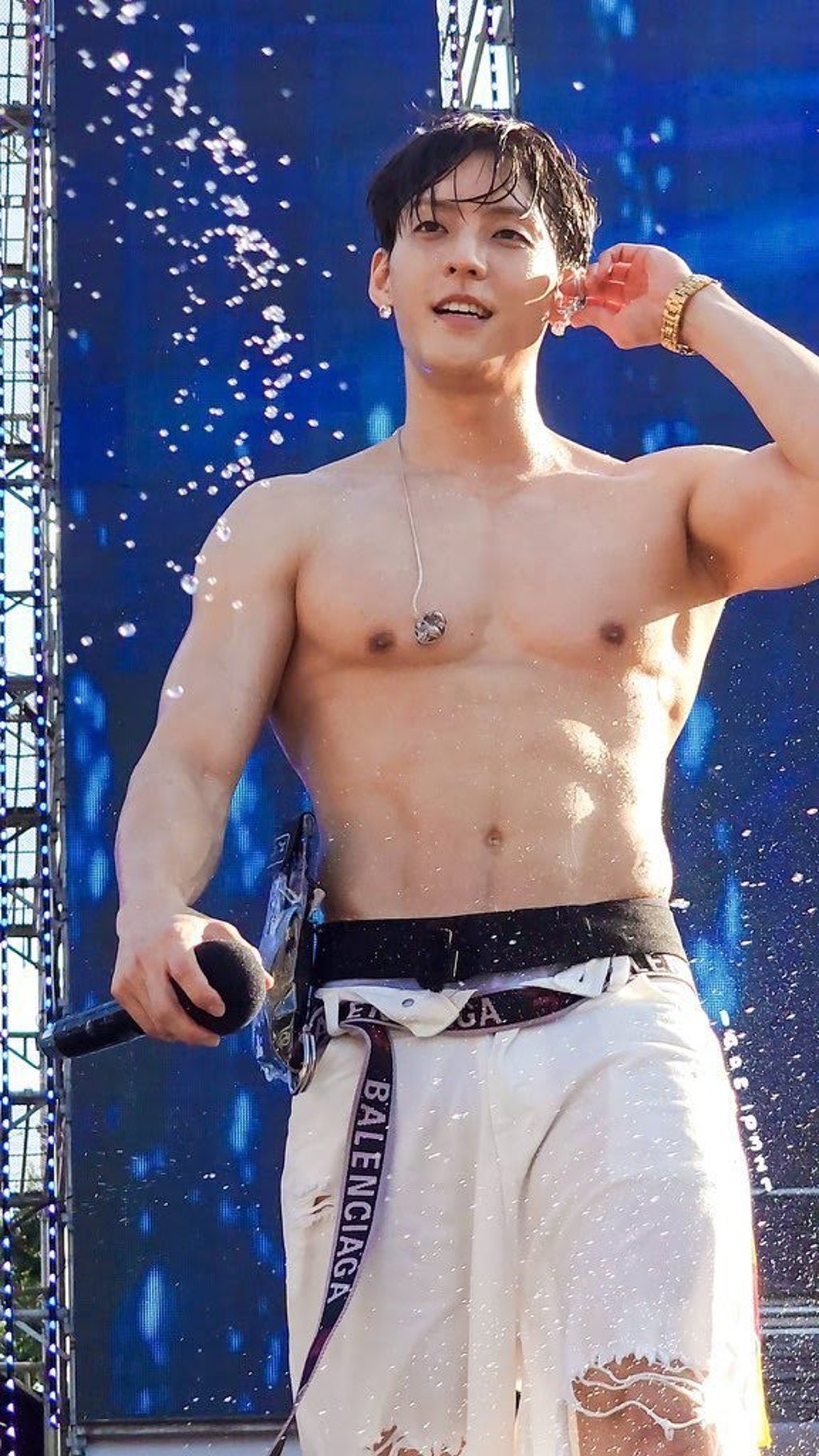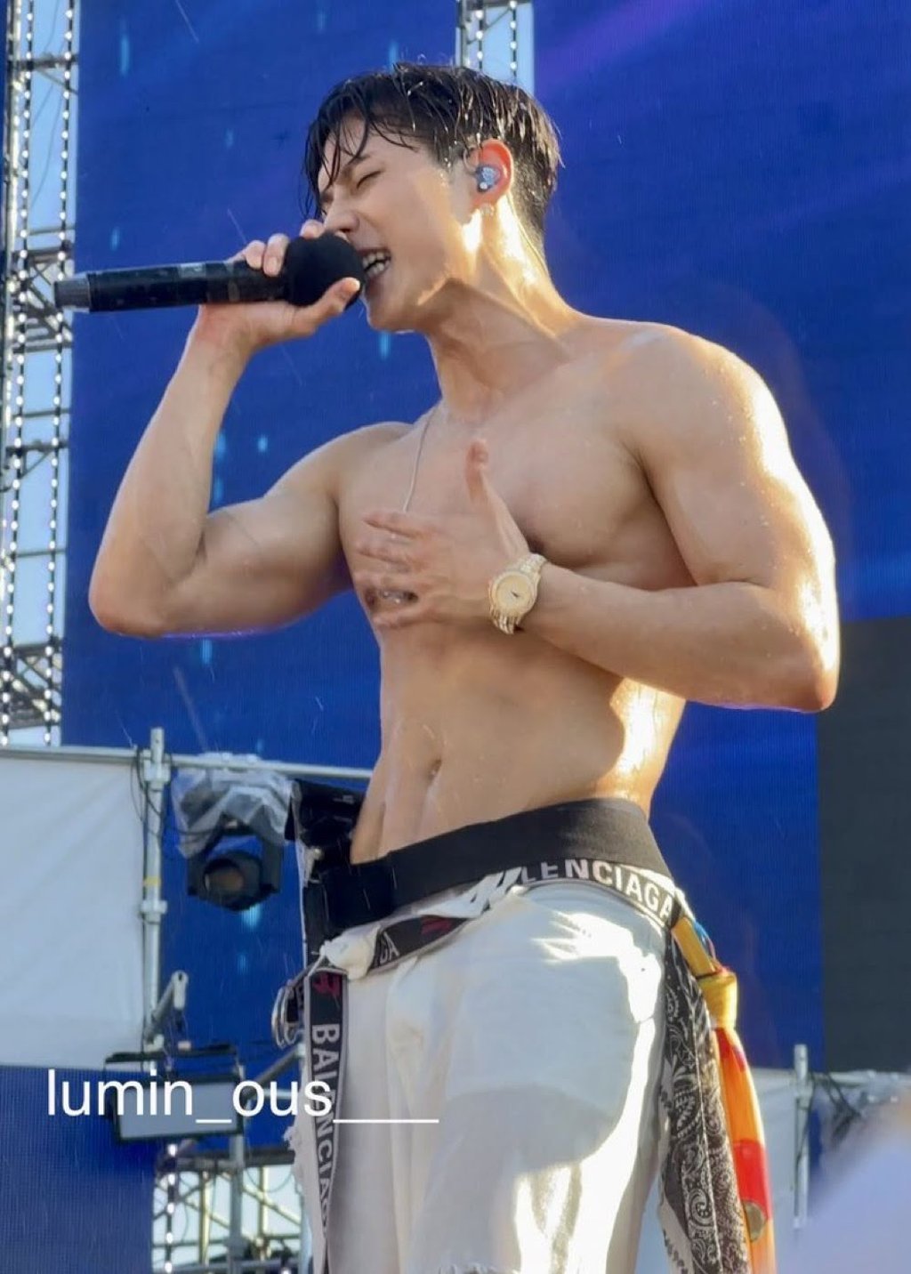 BTOB-ийн гишүүд хөгжилтэй, эгдүүтэй дүр төрхөөрөө ялгардаг байсан бол энэ удаа Minhyuk шаргуу хөдөлмөрлөж бүтээсэн сайхан биеэрээ гангарч, тайзан дээр гал гаргасан юм.