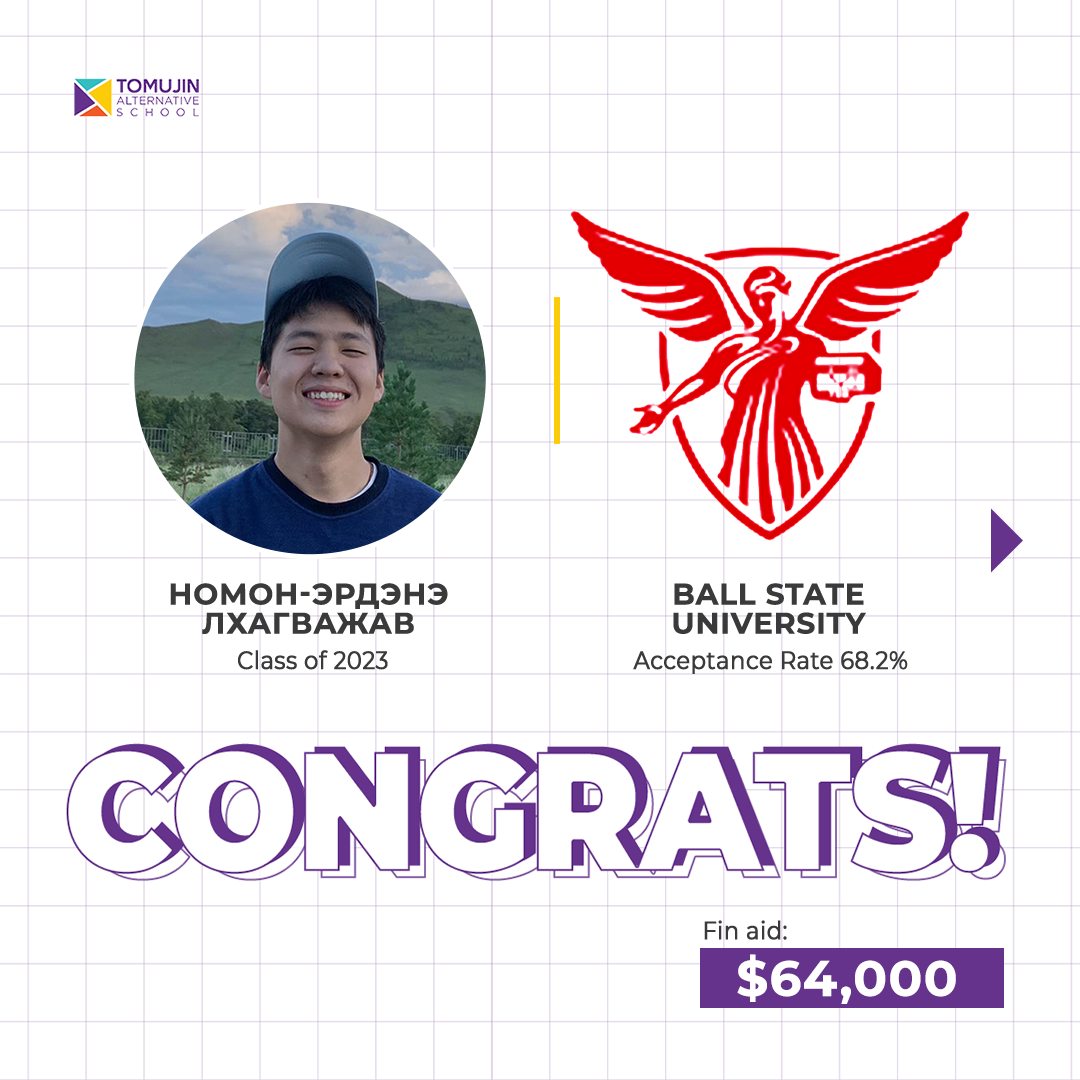 - АНУ-ын их, дээд сургууль руу өргөдлөө илгээх бүх үе шат 100 хувь өөрийн хичээл зүтгэлээс шалтгаалдаг. Би Дорнодоос Томүжинд ирээд нэг л зүйлийг ойлгосон. Хөдөө орон нутагт маш өндөр потенциалтай, чадварлаг хүүхдүүд олон бий. Гагц өргөдлөө илгээх чиглүүлэг хомс байдаг учир хүүхдүүд яг хаанаас эхлэж хэрхэн бэлдэх учраа олдоггүй. Тиймээс би найзуудтайгаа хамтран College wave төслийг хэрэгжүүлж эхэлсэн. АНУ-ын их дээд сургууль руу өргөдлөө илгээх хүсэлтэй хүүхдүүдэд багахан ч болтугай тус хүргэж, явах жимийг гэрэлтүүлж өгөхсөн гэж хүсэж байна. Эцэст нь өөрөө өөртөө үнэн байж, хүсэл мөрөөдөлдөө үнэнч хандан, чин сэтгэлээсээ хичээвэл бүх зүйл боломжтой гэж хэлмээр байна.