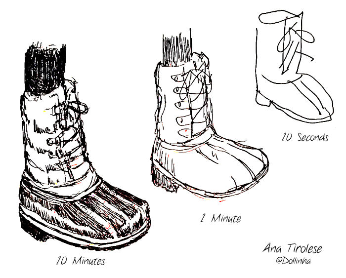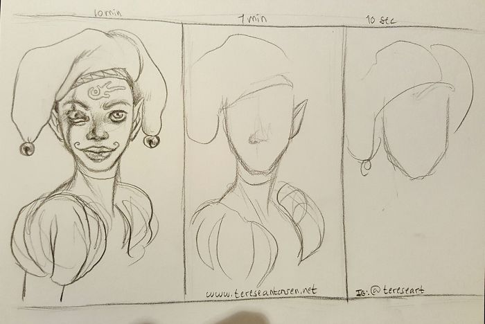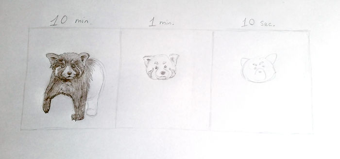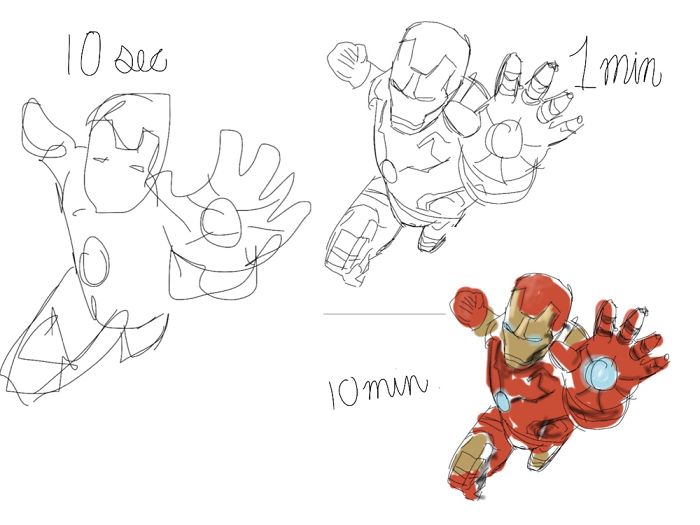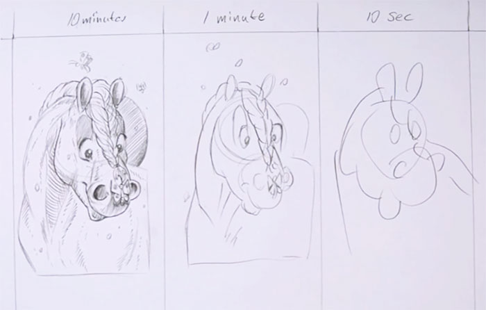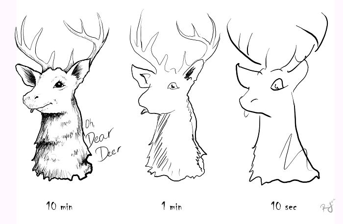 Зураач Марк Криллэйгийн бүтээлээс сонирхуулж байна. Тэрээр өөрийгөө сорьж нэг зургийг 10 секунд, 1 минут, 10 минутад хэрхэн зурахыг туршдаг байна. Тэрээр “Ингэж зурах нь нэг талаасаа хөгжилтэй мэт боловч өөрийнхөө хурдыг сайжруулах нэг арга болдог” хэмээжээ.