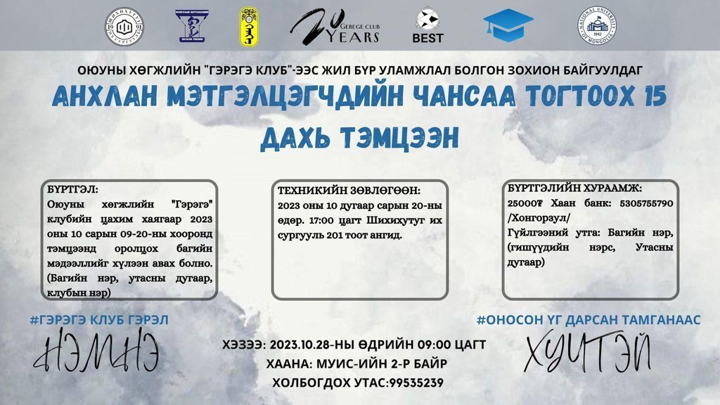 Еренхий зохион байгуулагч: Оюуны хөгжлийн Гэрэгэ клуб