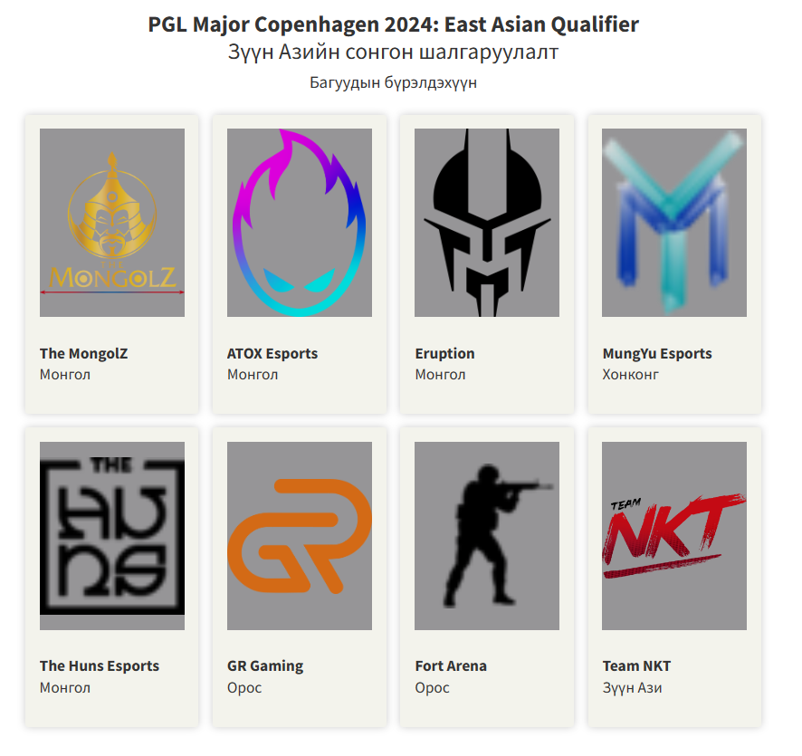 CS2-ын дэлхийн аварга шалгаруулах тэмцээн гэж болохуйц "PGL Major Copenhagen 2024" гуравдугаар сарын 17-31-ний хооронд Данийн нийслэлд болно. Тус тэмцээний Зүүн Азийн сонгон шалгаруулалтад оролцох багууд өчигдөр тодорлоо.