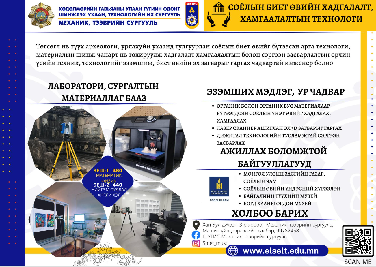 Энэ хүрээнд Соёлын яам БНСУ-ын Гунжү их сургуулийн “Соёлын өвийн хамгаалалтын шинжлэх ухааны тэнхим”-тэй хамтран “Соёлын биет өвийн хадгалалт хамгаалалтын мэргэжилтний чадавхыг бэхжүүлэх” төслийг 2020 онд эхлүүлсэн аж. Тус оноос хойш мэргэжилтэн бэлтгэх сургалтын хөтөлбөр боловсруулж, өнгөрсөн оноос эхлэн “Соёлын биет өвийн хадгалалт, хамгаалалтын технологи”-ийн бакалавр, магистрын ангидаа оюутан элсүүлж эхэлжээ.