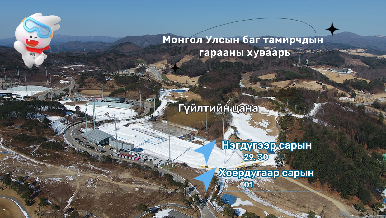 Манай улсаас гүйлтийн цана, биатлон, уулын цанын төрөлд 12 тамирчин оролцож байна. Гарааны хуваарийг зурагт үзүүлэв.