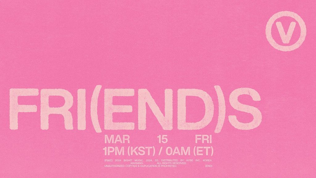 BTS хамтлагийн гишүүн V Гуравдугаар сарын 15-нд “Fri(end)s” нэртэй шинэ уран бүтээлээ цацна гэдгээ мэдээллээ.