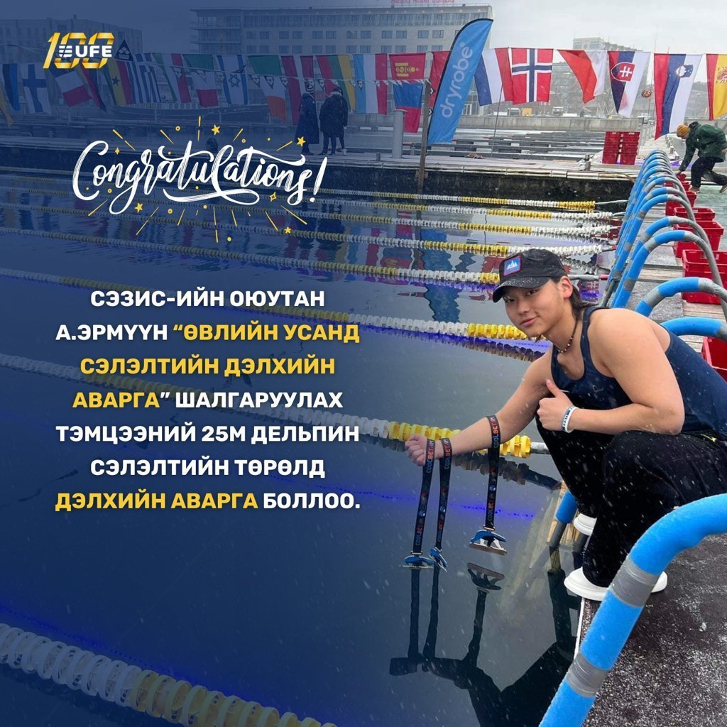 СЭЗИС-ийн Эдийн засгийн тэнхимийн 2-р курсийн оюутан Алтантуяагийн Эрмүүн нь Эстони улсын Таллин хотод 2024.03.04-09 өдрүүдэд болсон “Өвлийн усанд сэлэлтийн дэлхийн аварга” шалгаруулах тэмцээнд оролцож алтан медаль хүртжээ.