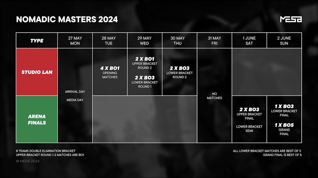 Энэхүү "Nomadic Masters Spring 2024" тэмцээнд Ази тивийн чансааг тэргүүлэгч Монголын "TheMongolz" болон Хятадын "Lynn Vision" багууд урилгаар оролцоно. Мөн Европ тивийн хоёр багт урилга илгээснээс, европын хамгийн том э-спортын байгууллагуудын нэг "OG" ирэхээр болжээ.