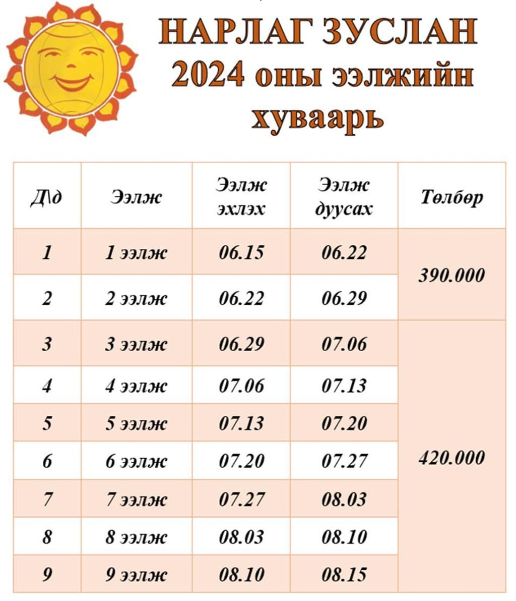 Зарим зуслангийн ээлжийн хуваарь, үнэ тарифын мэдээллийг нэгтгэн хүргэж байна.